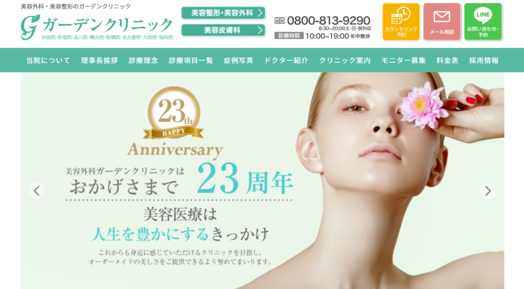 所在地東京、埼玉、京都など全国10院展開する美容クリニック