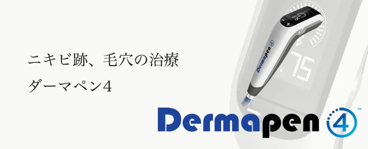 ダーマペンは、高度な技術が必要な美容施術で、皮膚に微細な針を刺すことで、皮膚再生やコラーゲンの生成を促進する美容医療機器です。繰り返し使用することで、美肌や肌の改善に効果が期待できます。いままで治療が難しかった「ニキビ跡」「毛穴の黒ずみ・広がり」「小じわ」「お肌トラブル・ハリ・ツヤ」なども改善可能です。