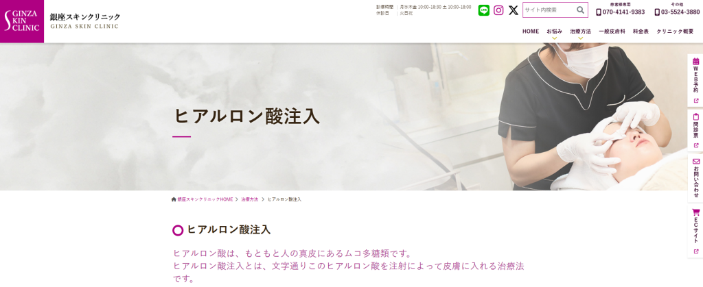 銀座でおすすめのヒアルロン酸注入クリニックや上手い先生