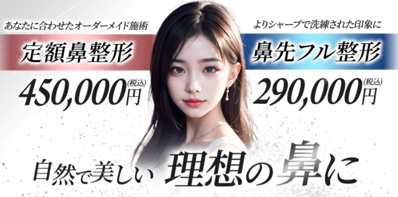 | プロテーゼ隆鼻術 | スタンダード法 96,800円 エクストラ法 264,000円 エクストラオーダー法 462,000円 |