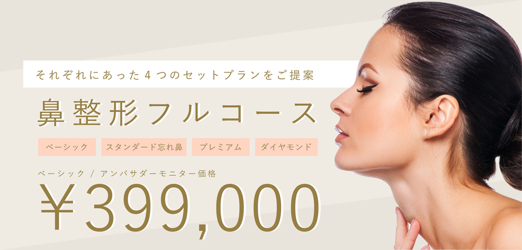 鼻筋に、鼻の形や大きさを改善するために人工の鼻のインプラント(プロテーゼ)を使用する美容整形手術です。鼻筋に高さを作り、すっと綺麗な鼻筋を実現させます。素材は体内に吸収されないため、効果は半永久的に持続します。