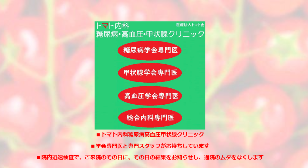クリニック名トマト内科糖尿病 高血圧 甲状腺クリニック
